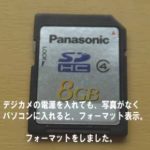 まずは、パソコンに挿入しました。カードが反応するもフォーマットしますか?表示。