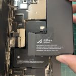 この写真は、雨の日に駐車場に落とし車に踏まれたiPhone。Apple公式診断機を使い復活できたので中古iPhoneにデータ移行しました。