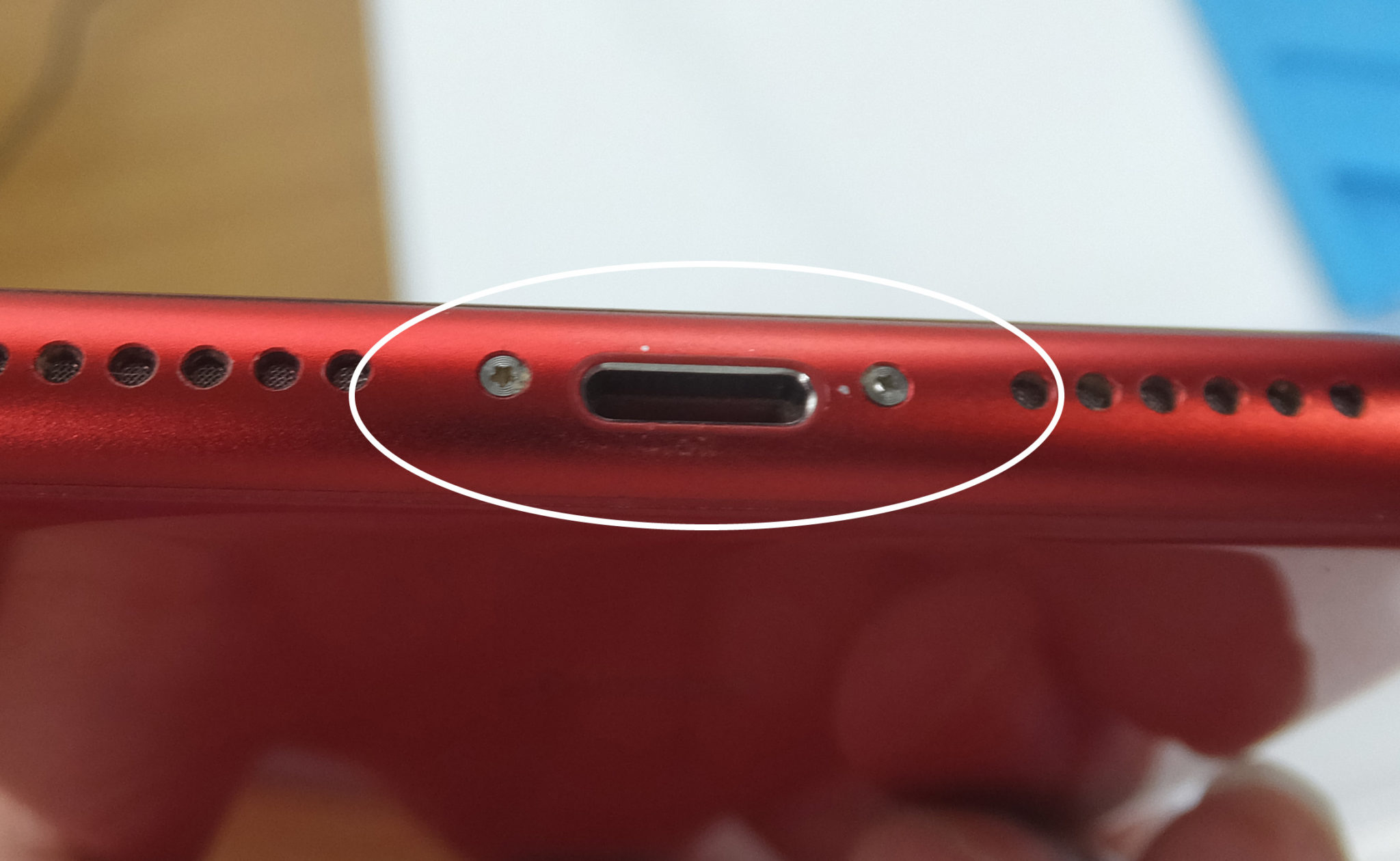 充電端子付近に、キズあります。